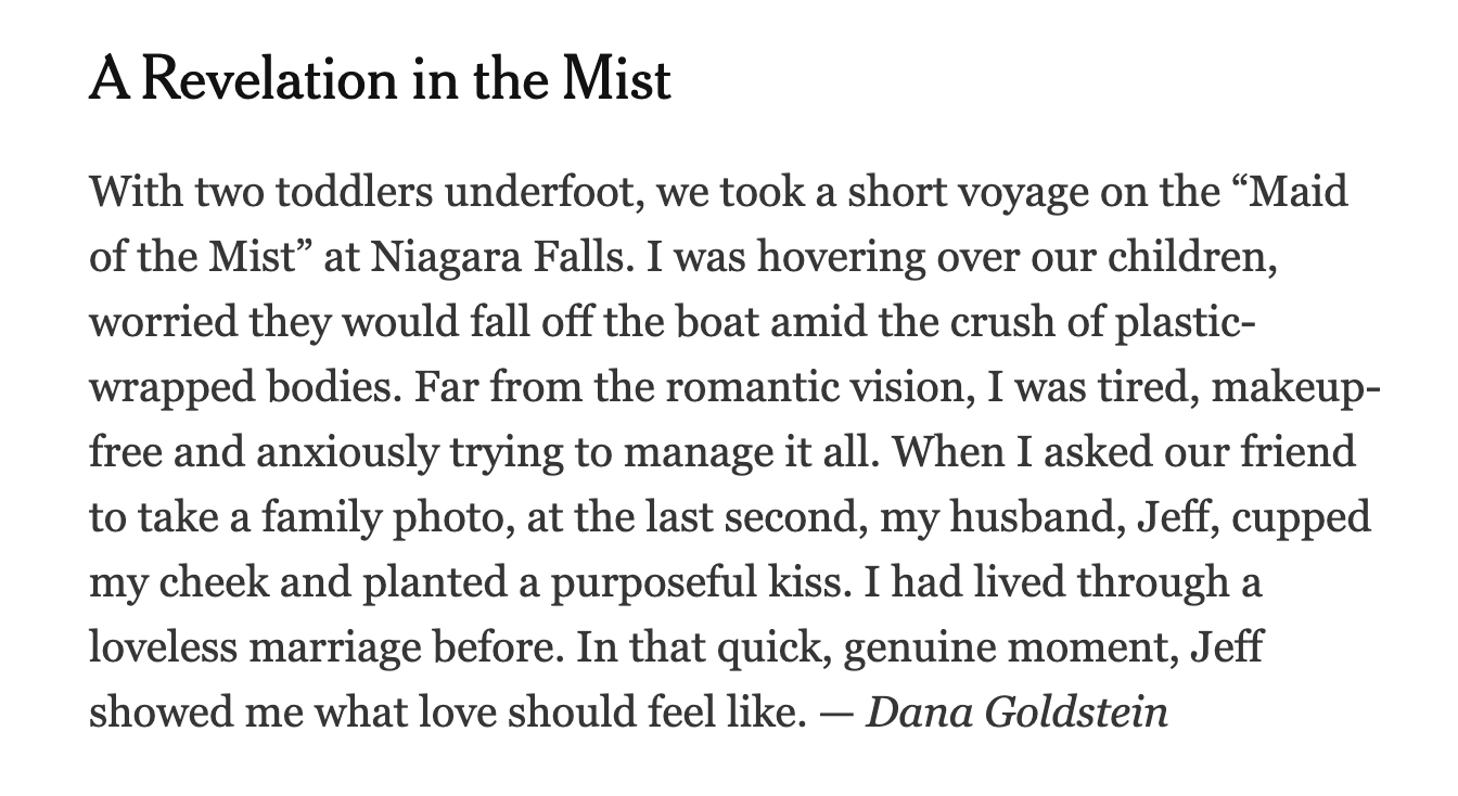 In May of 2022, Jeff and I appeared in the New York Times Tiny Love Stories.