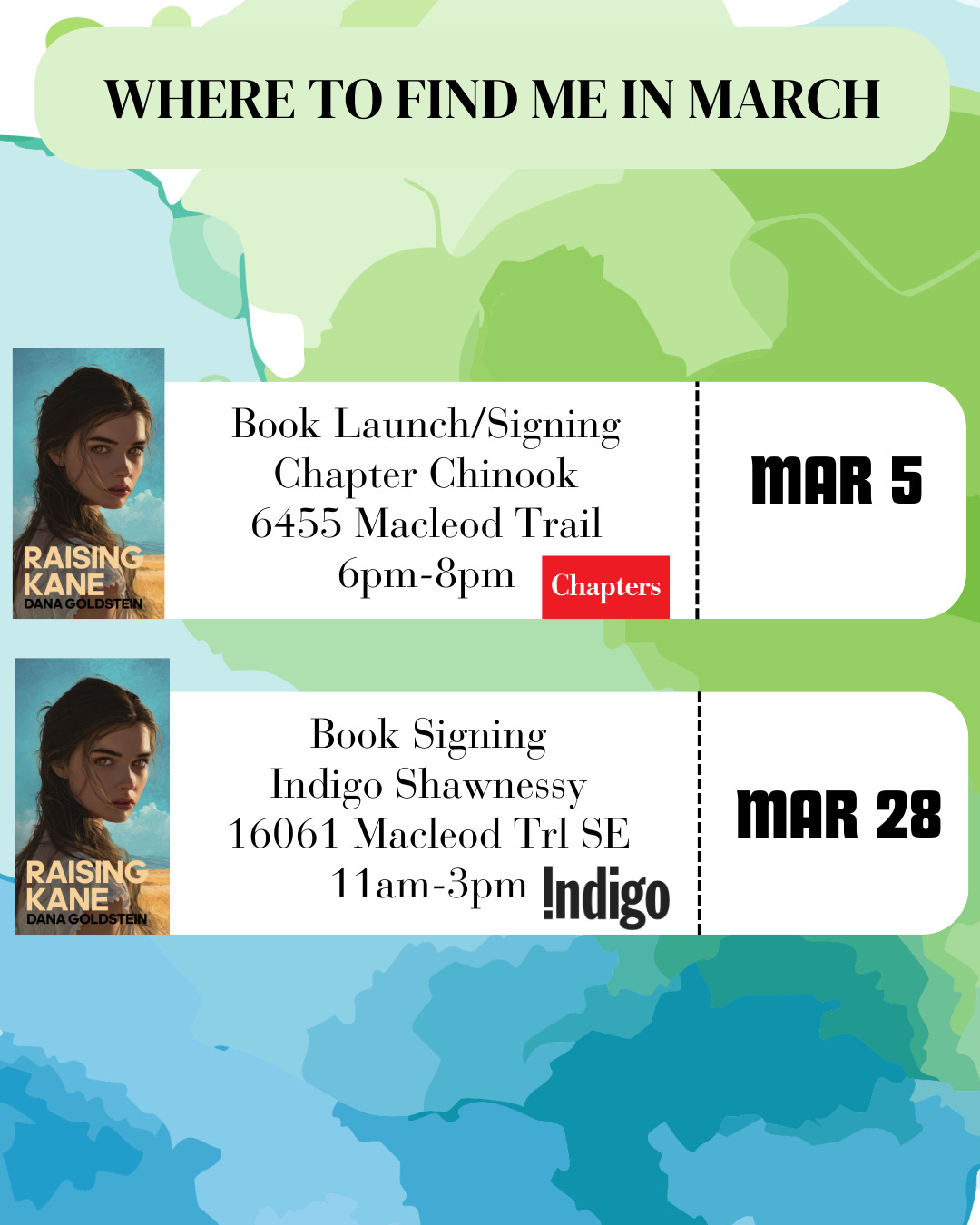 Now that the new novel has been released, it’s time for me to get back on the signing circuit. I’m easing myself into book signings and markets this month with only two events. I will be making smarter choices with where I spend my time this season; I burned out last year and missed spending weekends camping with my hubby. Also, I now have that bookstore gig, so….more about this below.