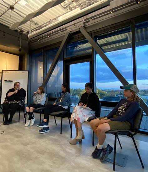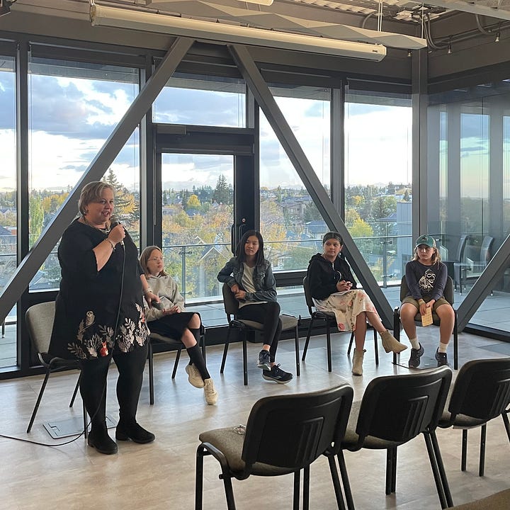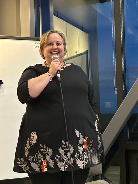 I worried for nothing. The pizza was ready. The room was set up, save for a missing table and microphone. The event space host was on it. My kids and my husband were setting up the food and drinks. Owl’s Nest Bookstore had more than enough stock (side note: Owl’s Nest is my favourite independent and they ship everywhere, so if you want to avoid Amazon, this is the place to order SHIFT). There was a blip with the payment terminal, but people were arriving and I was thankfully distracted.