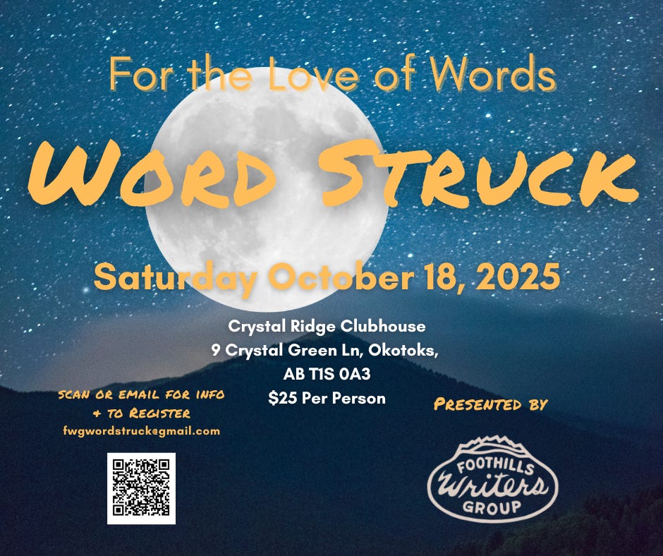 Tickets are still on sale for Wordstruck, a literary celebration happening in October. For $25 you will meet some fantastic authors, and hear from two distinguished guest speakers: Calgary’s Poet Laureate Wakefield Brewster and acclaimed author Janice MacDonald. Your ticket includes one drink (wine or beer/ coffee, tea or soda) and snacks.