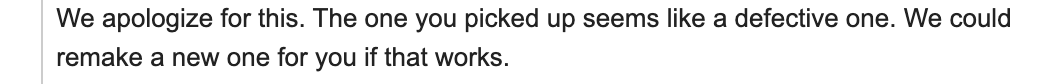 They replaced the tumbler, and told me to keep the defective one. It will still be fine for cold drinks, they explained. I offered to pay for the larger size, but they gifted that to me for the inconvenience. A few months later, I ordered another coffee tumbler for my husband.